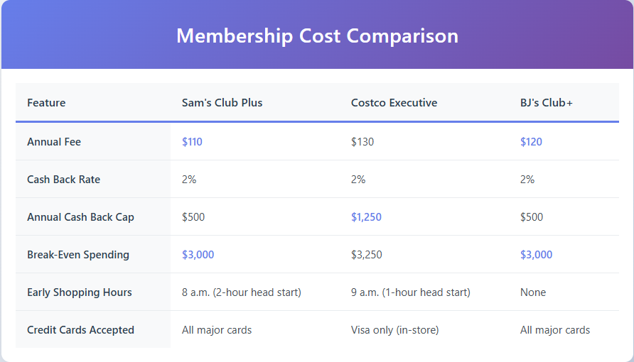The catch? You need to spend at least $3,000 annually on qualifying purchases at Sam's Club just to break even on the cash back alone. And that's before we factor in which credit card you're using to maximize your rewards.