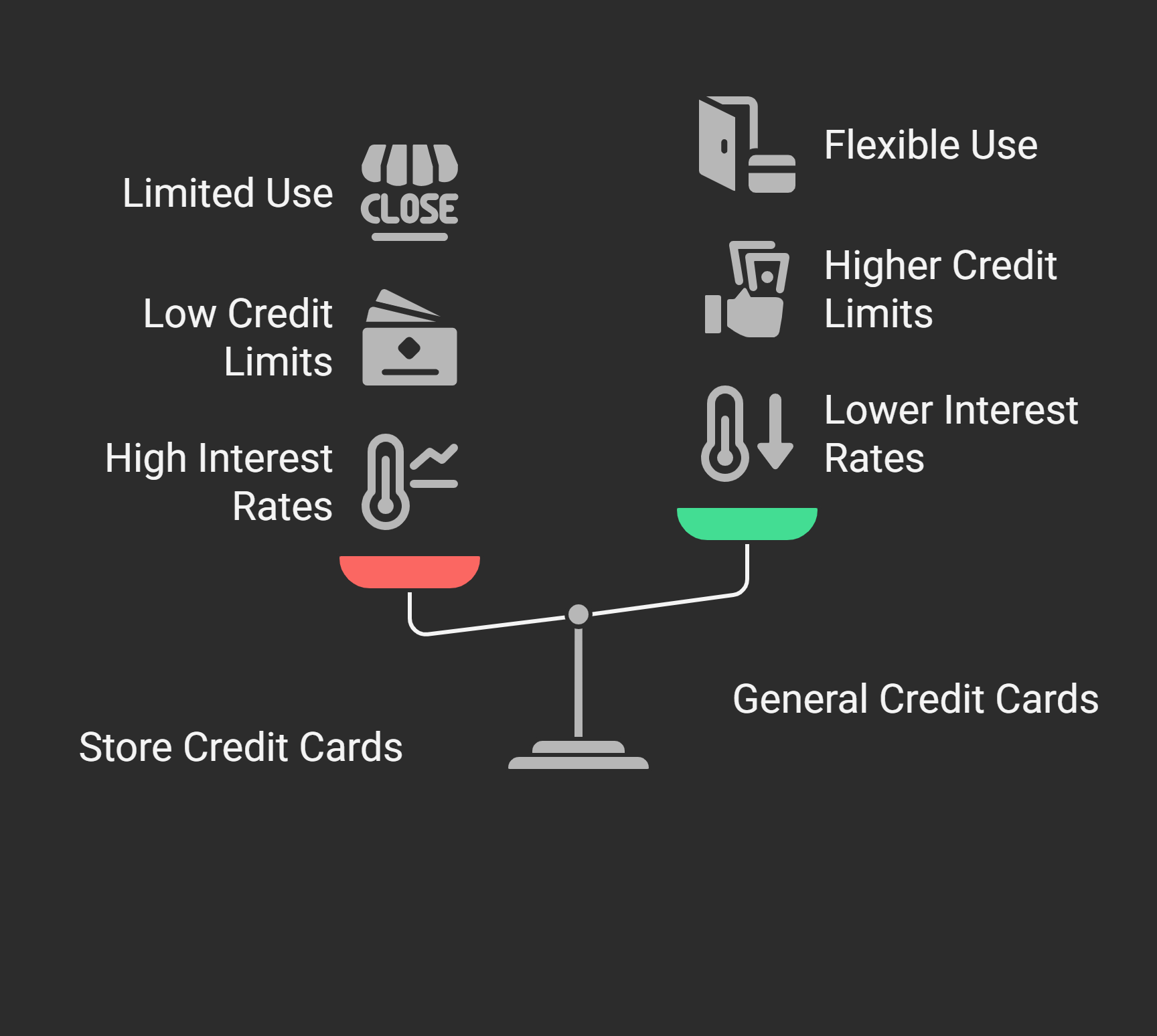 Store cards typically come with lower credit lines than general cards. A big shopping trip or a couple of purchases can easily max out a store card’s limit, which hurts your credit utilization ratio (a factor in your credit score). For instance, a $500 limit card would be 80% utilized by a $400 purchase – potentially dinging your credit score if reported that way.