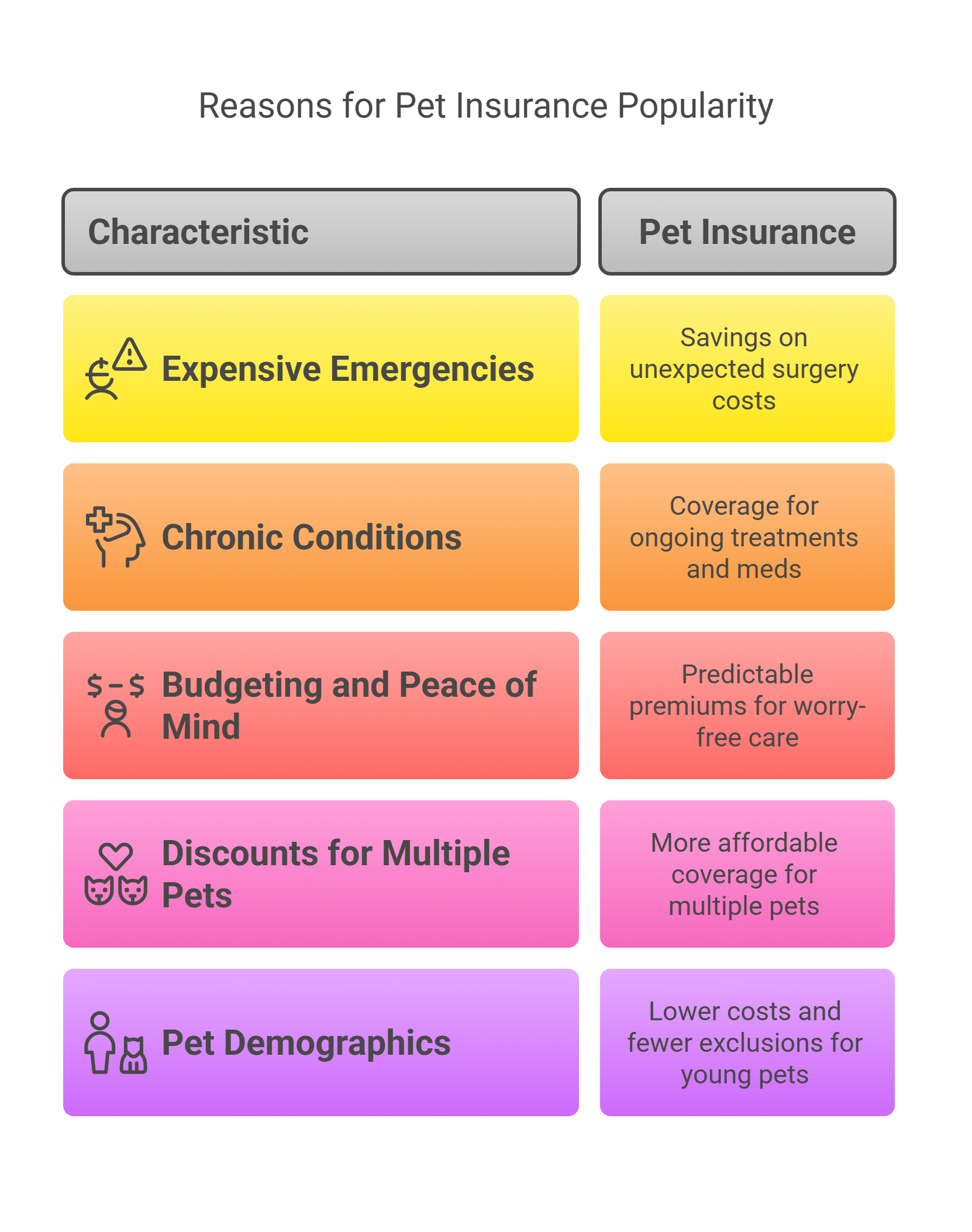 Veterinary care costs are rising every year. Advances in vet medicine mean better treatments for your pet – but also bigger bills. Here are a few reasons pet insurance has grown in popularity: